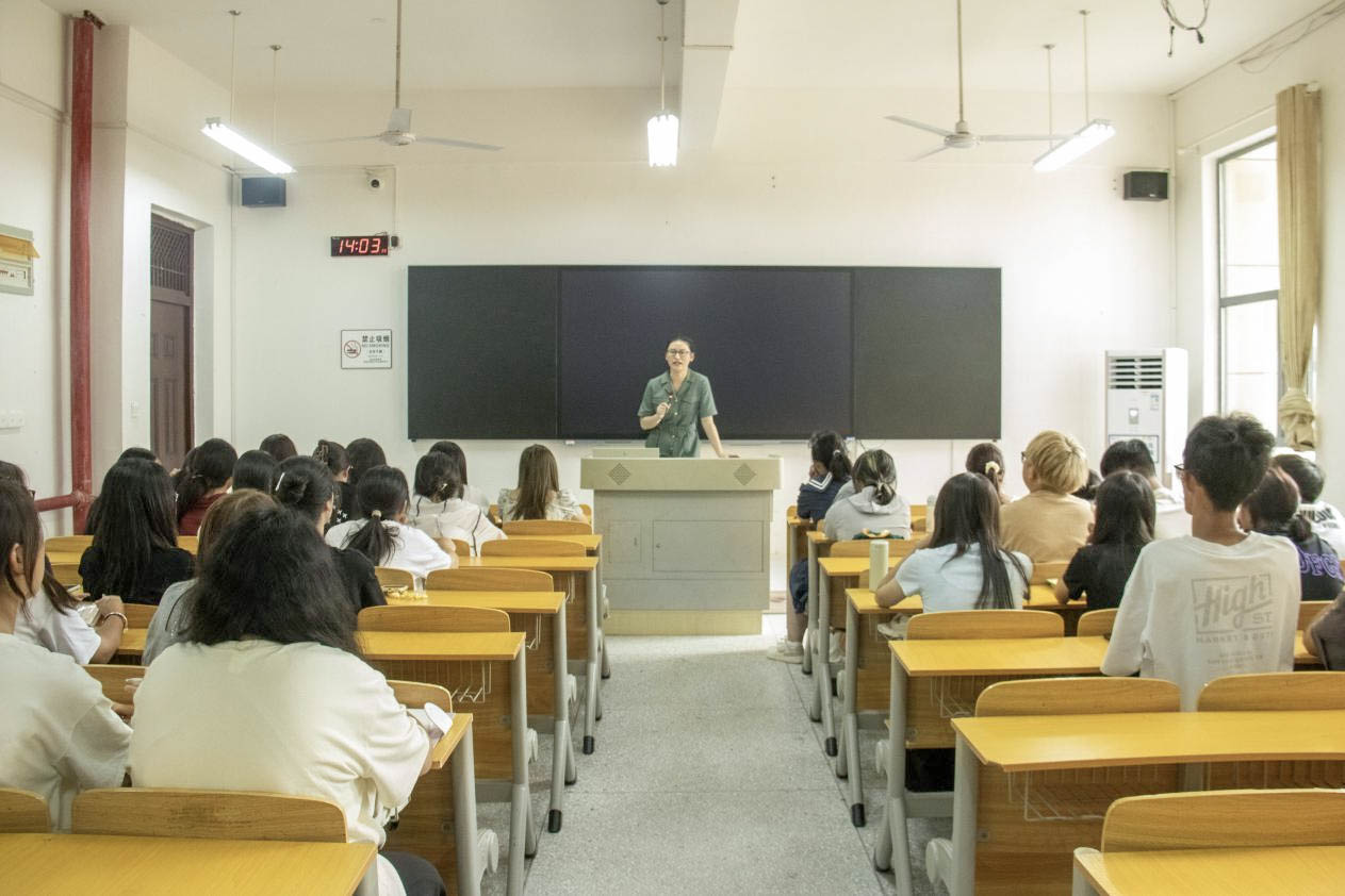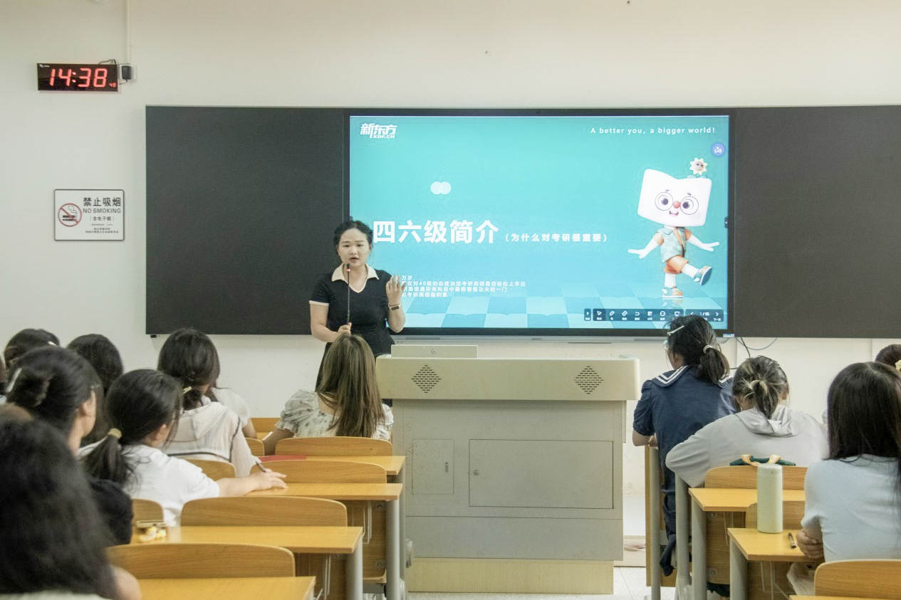课堂伊始,向淼老师为新生推荐了核心书单,并介绍了“三步走”阅读法(沉浸故事、细读语言、批判思考),帮助他们从语言学习者过渡到文学鉴赏者。随后,刘永莉老师阐明了文学阅读的多重价值:为论文写作奠基、理解社会人性、提供精神力量,解答了“英语专业学什么”的核心问题。最后,新东方老师梳理了四六级、专四专八与考研的关系,解析了学硕、专硕的区别并给出择校建议,帮助新生从大一起科学规划学业与未来发展。