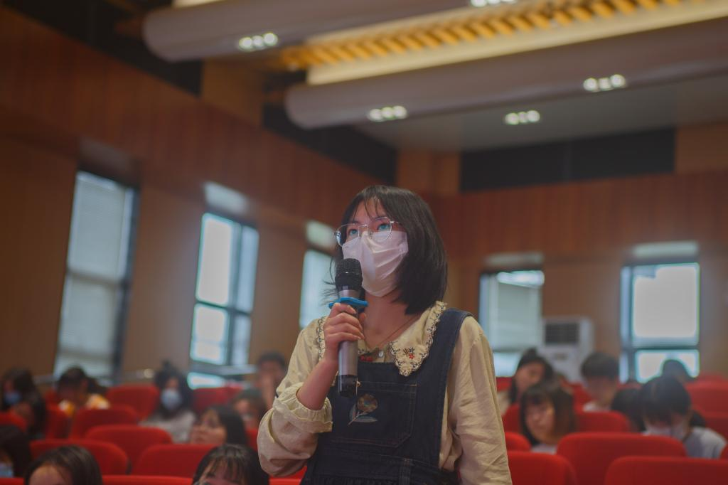 郑教授有着丰富的普通话教学经验和近15年的普通话测试经历。在讲座中郑教授对普通话测试流程、注意事项和普通话水平测试的易错知识点进行了深入浅出的讲解。郑教授在现场给同学们示范了标准普通话的读音,学生与郑教授积极互动,气氛热烈。
