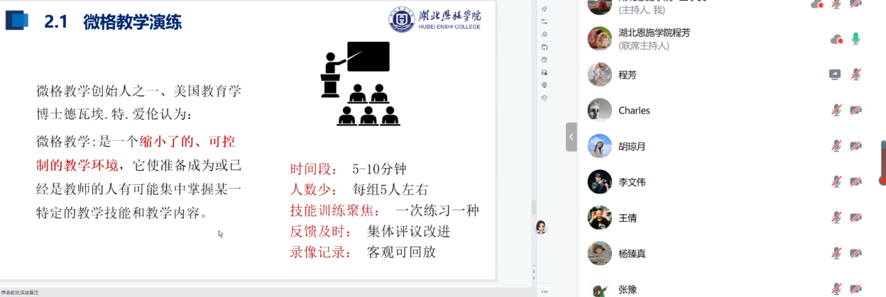 程芳以“六步成课”为主线,系统拆解BOPPPS六大环节——导入、目标、前测、参与式教学、后测与总结,强调“有效课堂是设计出来的”,并现场示范10分钟微格教学,让教师直观体验“学生为中心”的课堂节奏。