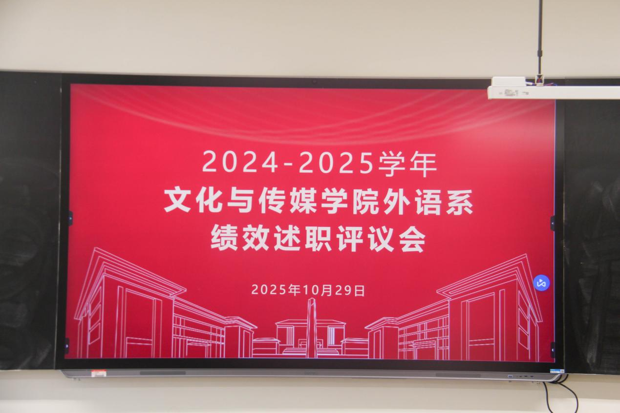 本网讯(实习记者 李玲茜)10月29日下午,文化与传媒学院外语系于至精楼216b教室组织开展教师绩效述职评议会。旨在进一步总结学年教育教学成果、提升教师专业素养与育人水平。