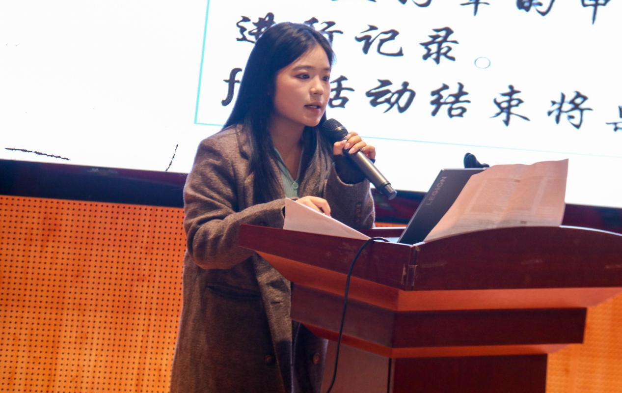 大会伊始,团学寓媒指导老师谭佳佳登台致辞。她着重强调,学生干部应始终以学业为根基,同时积极投身学院文化建设,充分发挥先锋引领作用。此外,谭老师寄语全体学生干部,需在实践中锤炼责任担当、磨砺坚韧恒心、涵养沉稳耐心,将这些优良品质内化于心、外化于行,成长为支撑学院发展的中坚力量。
