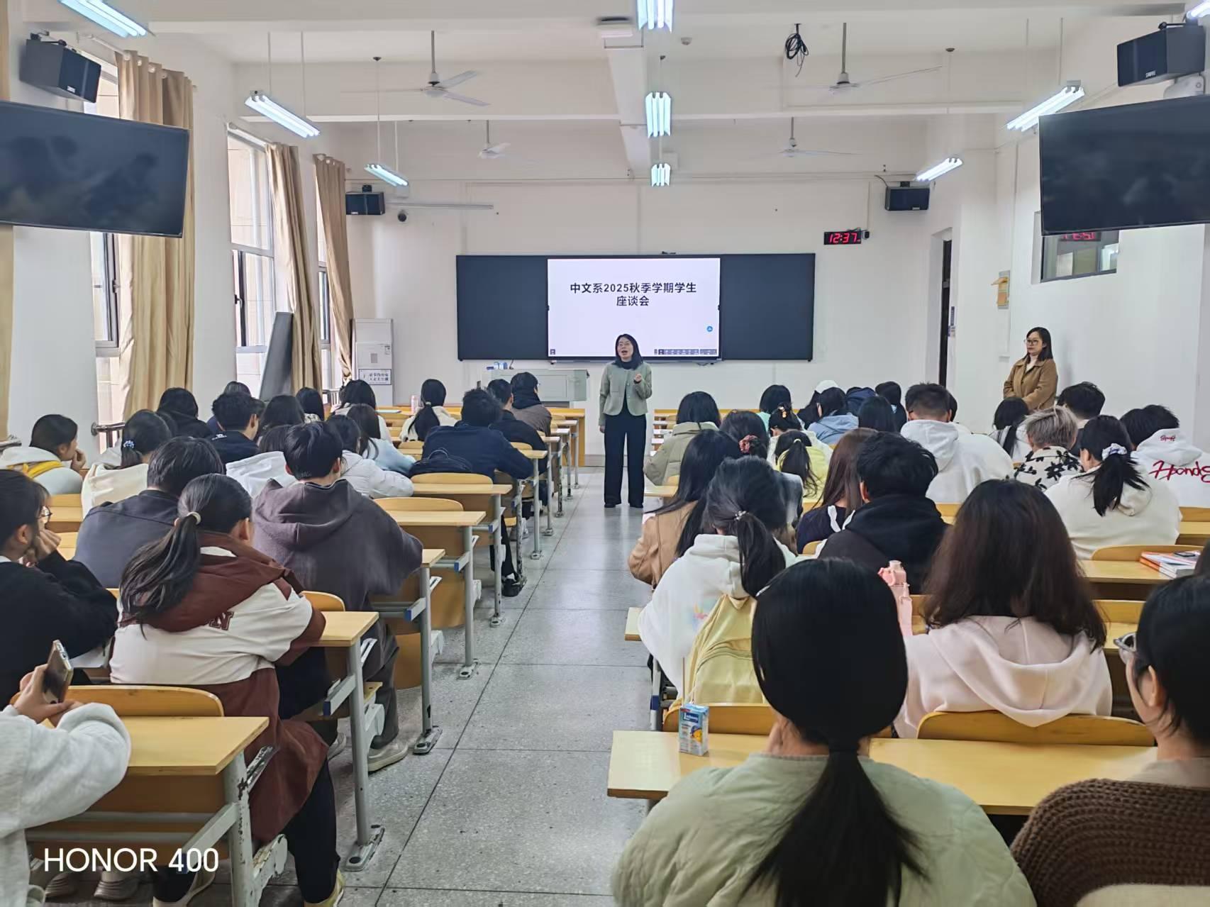 座谈会现场气氛热烈融洽。会议伊始,中文系主任杨倩主任首先明确了本次座谈会的目的,旨在搭建一个师生直接对话的平台,鼓励同学们畅所欲言,就课程设置、课堂教学、实践教学、学生管理及后勤服务等方面提出宝贵的意见和建议。杨院长表示:“同学们的成长与成才是我们所有工作的出发点和落脚点,大家的真实反馈是推动中文系持续改进、高质量发展的不竭动力。”