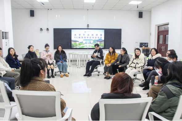 本网讯(记者 姚迷)12月10日下午,文化与传媒学院外语系、通识学院大学外语教研室、心理健康教研室、军事理论教研室在图书馆520室联合开展了SC(以学生为中心)教学改革读书分享会。本次活动旨在搭建教师交流平台,助力全体教师更加深入理解“以学生为中心”的内涵与要义。