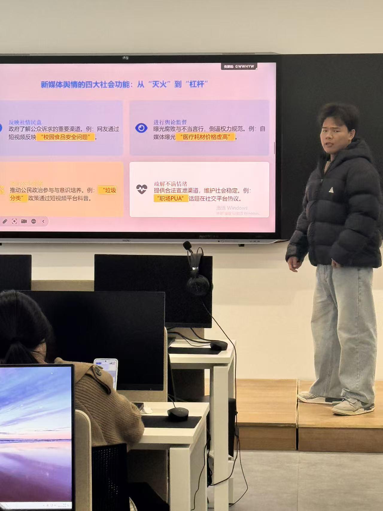 教学中,SC理念得到充分贯彻。课堂从教师单向讲授转变为以学生实践操练、项目研讨和真实案例复盘为主的高互动场域。导师引入大量一线实战案例,引导学生开展分组研讨、模拟推演与即时反馈。在《新媒体数据分析与应用》与《网络舆情监测与研判》课程中,学生借助AI工具,完成对真实数据的挖掘、分析与诊断报告撰写;《新媒体产品设计》与《网页设计与制作》课程则聚焦用户需求与体验,指导学生完成从概念构思到可视原型的设计实践。