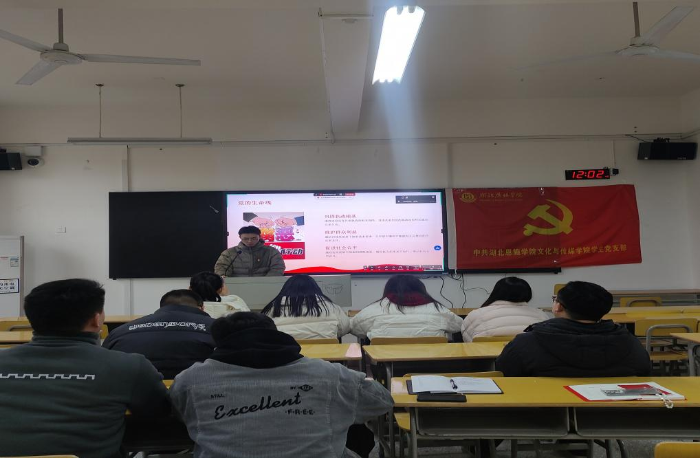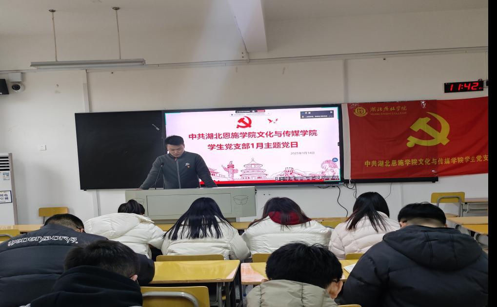 (本网讯 祝广恩)为强化党员政治素养与使命担当,推动支部建设提质增效,2026年1月14日,文化与传媒学院学生党支部在至精楼208教室通过线上线下相结合的方式开展了“回望来时路、奋进新征程”的主题党日活动,活动由吴柳同志主持。