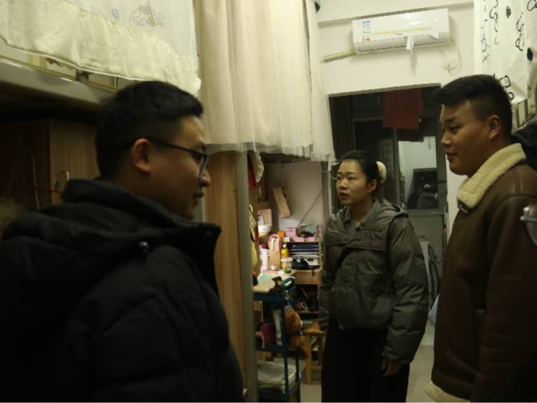 本网讯(记者 谈晓芮)新学期伊始,为进一步健全校园安全卫生管理制度,切实保障师生生命安全与身心健康,文化与传媒学院于3月5日晚19点组织全体辅导员开展本学期首次安全卫生大检查,全面排查生活隐患,筑牢安全防线。在检查过程中,全体辅导员深入走访学生宿舍,重点对违禁物品、用电规范及内务环境等方面进行细致查看,同时,辅导员们与同学们亲切交流,引导大家共同维护安全、整洁、舒适的生活空间,将文明意识内化于心、外...