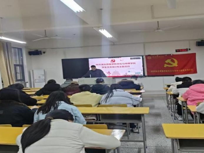 (本网讯 黄宇威)为强化党员政治素养与使命担当,推动支部建设提质增效,2026年3月8日,文化与传媒学院学生党支部开展“党旗引领、实干笃行”主题党日活动,活动由吴柳同志主持,全体学生党员参与。活动伊始,支部完成党费缴纳通知工作。紧接着进行集中学习环节,学习了二月重要文件讲话精神;实践方面,支部常态化推进“学习强国”学习,贺紫薇同志讲授《共产党员不得信仰宗教》主题党课,组织党员述学述做、民主议事,设立党...
