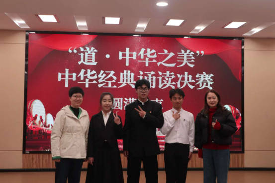 (通讯员 姜红梅)11月21日,由湖北民族大学语言文字工作委员会、共青团湖北民族大学委员会主办,湖北恩施学院协办的“道·中华之美——中华经典诵读比赛”决赛圆满落幕。我校文化与传媒学院教师、湖北省普通话测试员姜红梅受邀担任比赛评委,我校共青团副书记李新老师作为嘉宾出席活动。经过现场激烈角逐,我校选送的两个朗诵节目在决赛中表现优异。其中,由郭艳州同学朗诵的《满江红》荣获三等奖,由宋梓源、王雨欣同学合作朗...