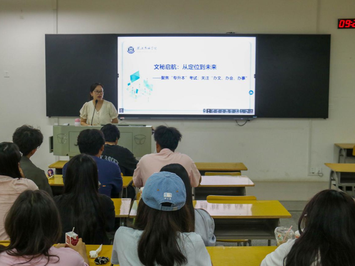 本网讯(记者 郑星怡 张瑞明)文化与传媒学院于9月19日在至精楼212教室举办了一场主题为“文秘启航:从定位到未来”的现代文秘专业分享会。本次分享会旨在帮助新生更好地理解专业定位,明确未来职业发展路径,为他们的大学生活和未来职业发展奠定坚实基础。会上,易海艳老师深入阐述了现代文秘专业的特色和课程体系,着重强调了专业对沟通协调能力和新媒体素养的培养。易老师为新生们详细剖析了现代文秘职业的广阔前景,激发了...