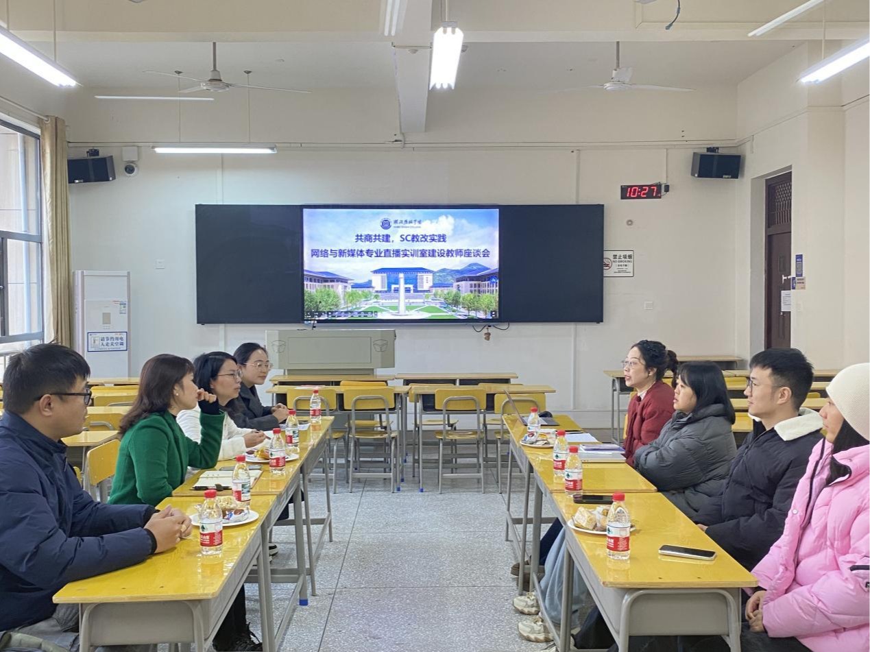 (通讯员 明奕兵)2025年12月17日,文化与传媒学院召开SC教学改革直播实训室建设教师座谈会。包含专职教师、双肩挑老师、业界导师在内的6名一线教师参会,中文系系主任兼副院长杨倩、执行院长张伶俐出席会议。会议积极响应教改号召,深入探索直播实训与专业课程的融合模式。张伶俐院长阐述了直播实训室建设对于专业发展的重要意义,专业负责人程晓霞老师介绍了建设规划初稿,涵盖软硬件配置、空间布局与教学目标等核心内容。与...