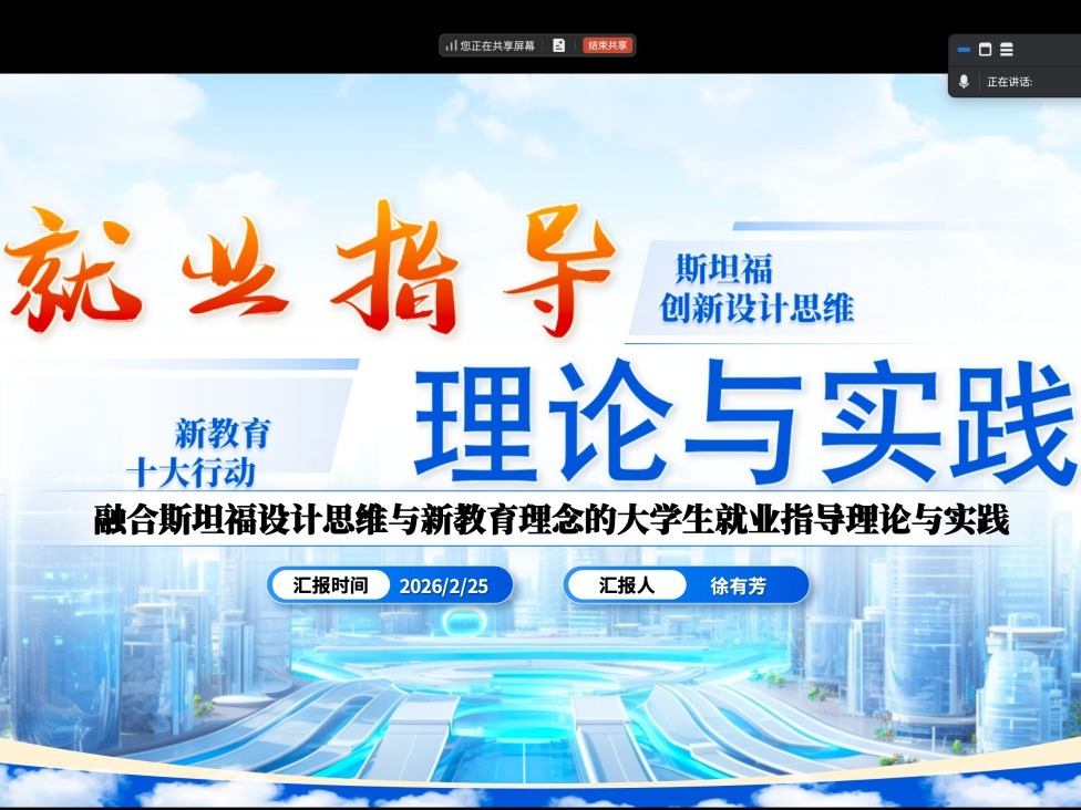 (通讯员 徐有芳)为深入推进SC教学改革,打造适配学生职业发展需求的优质就业指导课程,近日,创新教育教研室以线上形式成功召开课程设计专题研讨会。教研室主任程芳主持会议,课程设计负责老师徐有芳牵头汇报,全体教研室教师参会,围绕SC教改理念下的课程创新设计展开深度研讨。会上,徐有芳以SC教改核心要求为出发点,详细汇报了就业指导课程的整体设计方案。方案紧扣“以学生为中心”,将SC教改理念贯穿课程全流程,深度融...